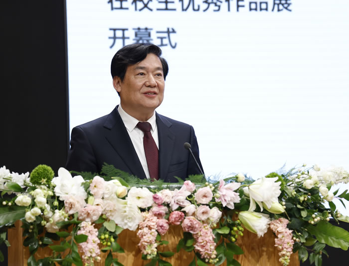 高洪在致辭中表示,在附中成立70周年里,學校舉辦了兩個展覽,一是“知行·傳習”教師展;二是“傳薈·成蹊”學生展。通過這兩個展覽,我們從中看到了經過70年的風雨歷程,附中仍然薪火相傳,附中仍然文脈賡續,附中仍然充滿生機和活力。70年前,中央美術學院附中是老院長徐悲鴻先生倡導下成立的,他提出“中國的美術教育從這里才真正走向正軌”,這體現了徐悲鴻院長對正規的美術教育的規律性認識,對優秀美術人才的成長規律性的認識:第一,辦好高等美術教育必須向基礎教育延伸,在基礎教育階段的美術教育要為正規的高等美術教育奠定堅實的基礎。第二,優秀的美術苗子應該從基礎教育階段就被發現,就開始著手培養。