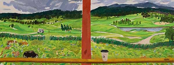 白曉剛《有咖啡和牦牛的風(fēng)景》 90×240cm 布面油畫 2020年
