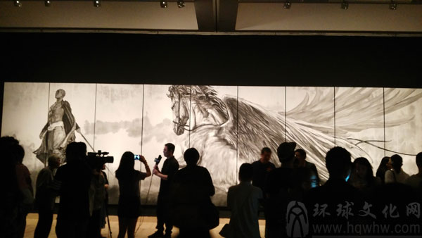 【環球文化網 北京訊/王紹軍】2016年9月4日下午,孫浩水墨作品展“白駒過隙”在中國美術館5號展廳開幕。孫浩為展覽專門創作的兩件巨幅“史詩性”作品——《海闊天空》和《于無聲處》也將在展廳震撼呈現。兩件作品均為長十多米,縱約三米的宏幅巨制,針對公共空間展示的巨大尺幅和“史詩性”描繪,展現出以孫浩為代表的“80后”一代強調“自我張揚”和“個性放大”的藝術特質,以及藝術家對于“史詩”本質提出的一種“重構”的新方法論:以個人的力量去感知過去,并讓所有的史實逐漸自主歸位。