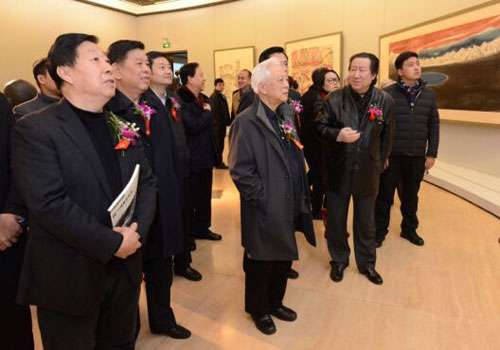 文化部黨組成員、副部長董偉,中國美術(shù)家協(xié)會主席劉大為,老藝術(shù)家代表謝志高、杜大愷,中國國家畫院院長楊曉陽先后致辭。周鐵農(nóng)、陳宗興、蔡武、陳存根、趙少華、覃志剛、丁偉、呂章申、劉勃舒、袁運(yùn)甫、詹建俊為開幕式剪彩。中國國家副院長趙衛(wèi)向大家介紹了出席開幕式的全國人大、全國政協(xié)、文化部、中國文聯(lián)、中國美協(xié)等相關(guān)部門領(lǐng)導(dǎo)和嘉賓。開幕式由中國國家畫院常務(wù)副院長盧禹舜主持。