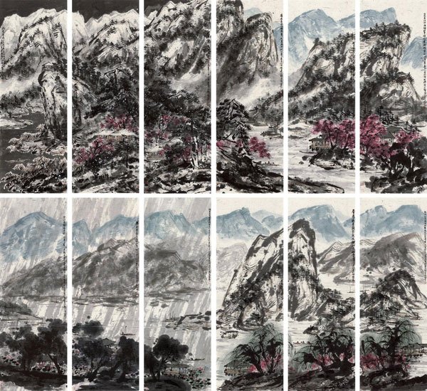 齊白石是近現代畫家中聲譽普及度最高的藝術家,而山水確屬少見,而此件拍賣作品的珍貴之處便聚焦在“齊白石、山水、十二條屏尺幅”這幾個關鍵詞上。白石老人的十二條屏,每一條屏畫面尺寸縱180厘米,橫47厘米,逾九億的拍賣價格十分喜人,看圖說話,區區感覺應屬于齊氏中等偏上水品作品。拍賣場就是名利場,吹噓鋪墊難免,天價主要是沖名頭與尺幅而至,泡沫純屬正常,富人游戲,向來如此。