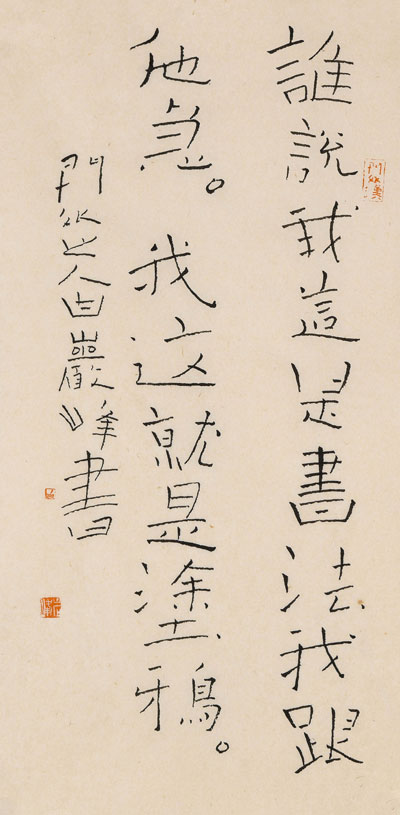 白巖峰:誰說這是書法我跟他急,我這就是涂鴉-2019唯有舉重若輕,方能駕輕就熟。藝術便是這樣了,認真里藏著不認真,正經里充滿不正經。恰如巖峰君筆下一語:誰說這是書法我跟他急,我這就是涂鴉!2019/10/5