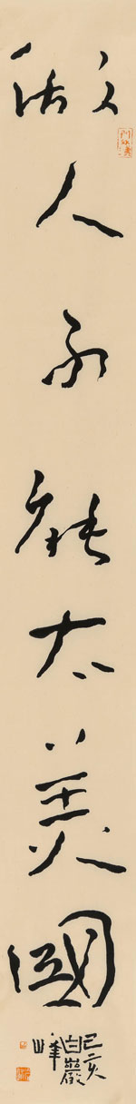白巖峰:講究-2019巖峰君下筆常常沉靜生拙,不拘一格,招致某些“名門正派”的書家鄙夷其字寫得“丑怪”、“草率而不老實”云云。區區以為,寫字當然要認真,但絕不可太老實。如果只是一味臨摹復制古人,那就太無趣了。學習古人寫字作畫更多地應該是筆墨背后的精神意境,自古大成就者都是勇于革新叛逆的顛覆者,故書畫一途認真的同時絕不能太老實,這樣才有找到自我的可能。巖峰君可謂心領神會,在藝途上能永葆“不安分”之心,下筆造句盡顯所見所想的時代面貌,惟愿他的這份“不安分”能更加勇猛茁壯。